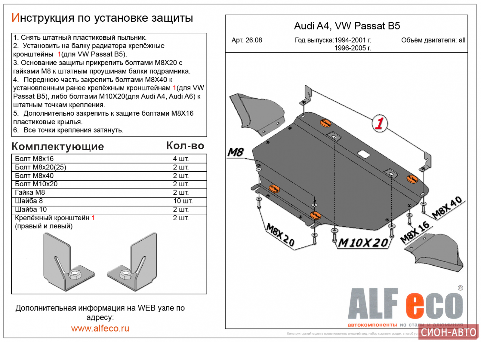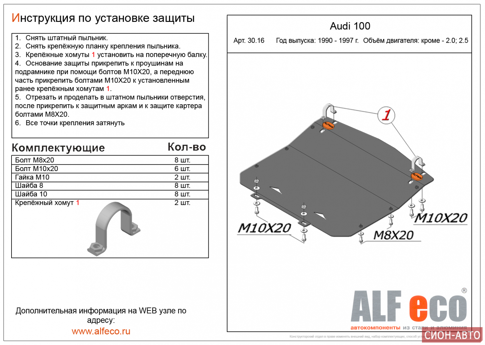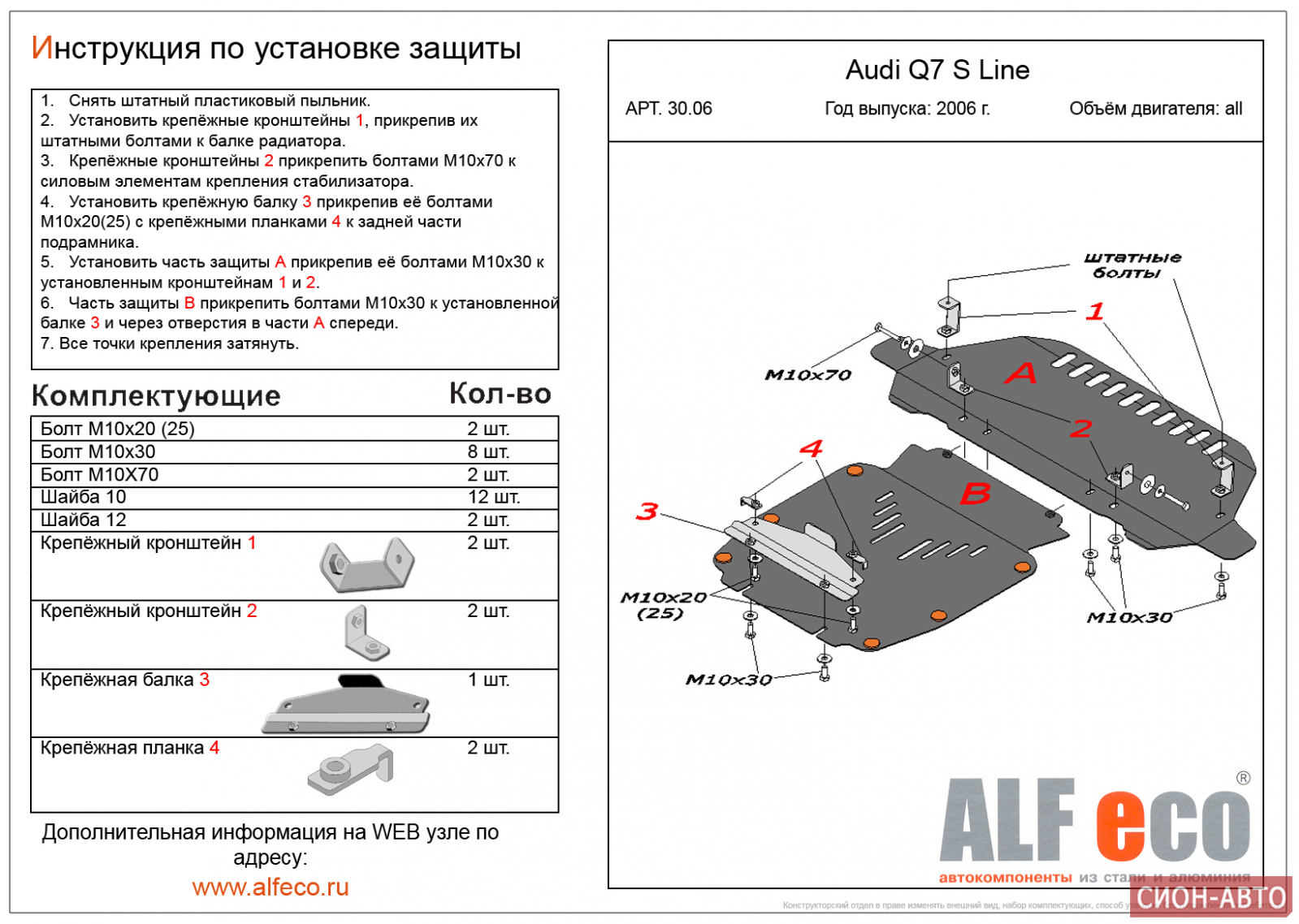 Страницы: (загрузить все) Защита картера1 страница Автомобиль Фото Название Произв. Стоимость Alfa Romeo 156 1997-2005, 2,4 JTD, картера и МКПП, сталь 2мм ALFeco 1900 руб. склад купить Audi A4 B5 1994 - 2001,all, картера, сталь 2мм ALFeco 1900 руб. склад купить Audi A4 B6 2000-2004, all, картера, сталь 2мм ALFeco 1900 руб. склад купить Audi A1 2010 -, all, картера и кпп, сталь 2мм ALFeco 1500 руб. склад купить Audi A4 B8 2008-, all, картера, сталь 2мм ALFeco 1500 руб. склад купить Audi A5 2007-, all, картера, сталь 2мм ALFeco 1500 руб. склад купить Audi A4 B8 большая, 2008-,all, картера и КПП, сталь 2мм ALFeco 1500 руб. склад купить Audi A5 большая 2007-,all, картера и КПП, сталь 2мм ALFeco 1500 руб. склад купить Audi A6 C6 2005-2011, all, картера и КПП, сталь 2мм ALFeco 1500 руб. склад купить Audi Q5 2008-, all, картера, сталь 2мм ALFeco 1500 руб. склад купить Audi Q7 S Line ( 2 части) 2006-2009, all, картера и радиатора, сталь 2мм ALFeco 2550 руб. склад купить Audi Q7 ( 2 части) 2006-2009, all, картера и радиатора, сталь 2мм ALFeco 2550 руб. склад купить Audi Q7 S Line 2007-2009, кроме 4.2 TDI, КПП и раздатки, сталь 2мм ALFeco 1500 руб. склад купить Audi Q7, 2006-2009, кроме 4.2 TDI, КПП и раздатки, сталь 2мм ALFeco 1500 руб. склад купить Audi Q7 offroad 2006-2009, all, картера , сталь 2мм ALFeco 1500 руб. склад купить Audi Q7 offroad 2006-2009, all, КПП и раздатки, сталь 2мм ALFeco 1500 руб. склад купить Audi A6 С5 1998-2004, all, картера, сталь 2мм ALFeco 1900 руб. склад купить Audi A6 1997-2004, all, АКПП, сталь 2мм ALFeco 1300 руб. склад купить Audi 80/90, S4 (45 кузов) 1986-1994, Кроме 1,6; 1,9, картера, сталь 2мм ALFeco 1900 руб. склад купить Audi 100 1990-1997, кроме - 2,0; 2,5 D, картера, сталь 2мм ALFeco 1900 руб. склад купить Audi A6 C4 1994-1997, кроме - 2,0; 2,5 D, картера, сталь 2мм ALFeco 1900 руб. склад купить Audi 100 1990-1994, 2.0, картера, сталь 2мм ALFeco 1900 руб. склад купить Audi A6 С4 1994-1997, 2.0, картера, сталь 2мм ALFeco 1900 руб. склад купить Audi 100 CC 1985-1990, кроме-2.3; 2,2, картера, сталь 2мм ALFeco 1900 руб. склад купить Audi Q7 S Line 2006-2009, 4.2 TDI, КПП и раздатки, сталь 2мм ALFeco 1500 руб. склад купить GoodsContent Параметры выбранного товара X